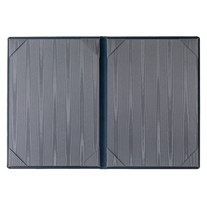 Hand-made custom certificate holder, luxuriously bound in dark blue leather-effect material over padded boards. The interior is lined with watered silk, making it ideal for preserving, displaying and holding graduation certificates. Designed to take two A4 documents (210 mm × 297 mm).